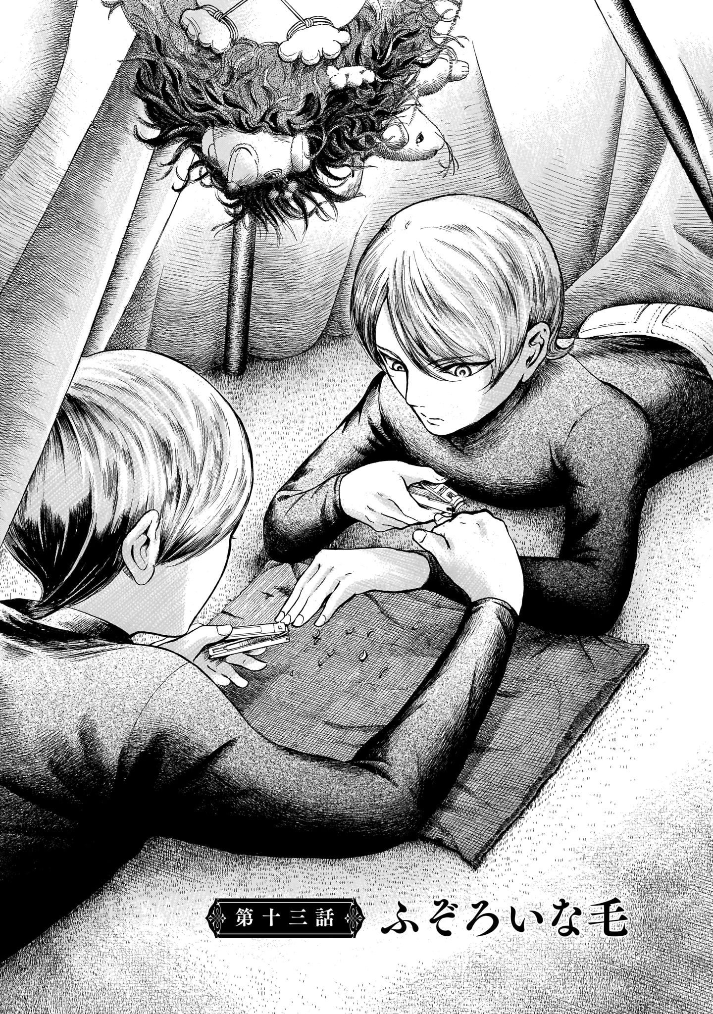 ハルタ 佐野菜見 ミギとダリ まったく同じ見た目の双子 ミギとダリ ひとりの少年 秘鳥を装って園山家で暮らすふたりに 予想だにしなかった危機が迫る 第13話 ふぞろいな毛 01 07